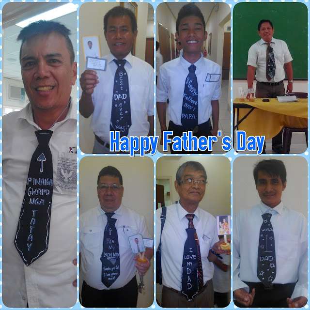 I asked the missionaries to write and design on the ties I made. At first it was easy to make a message for fathers.. but later on we're running out of what to say for them. We thought that we could right a message for our own father. And then, I became a little bit emotional (without noticing the sisters that i felt sad).